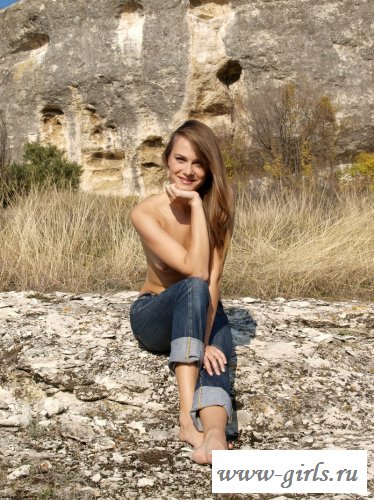 Отделившись от группы туристка в одних толкьо синих джинсах и с голыми сиськами решила посмотреть на красоты природы, ее груди покачиваются при ходьбе и она поддерживает их руками, вдруг она запнулась и сне слетели штаны, обнажая волосатую натуральную письку.