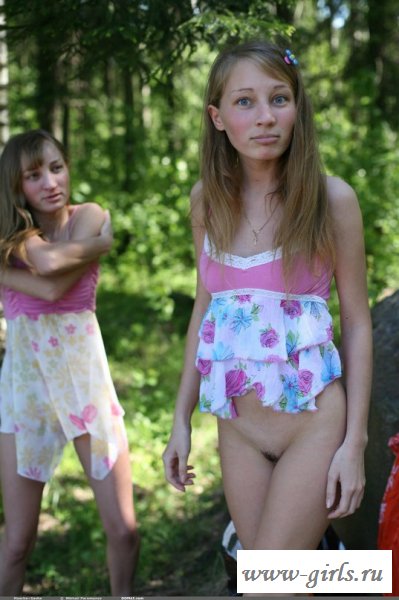 Мы долго шли по лесу, пока не наткнулись на вполне приличную одинокую прогалину, на которой никто точно не потревожит. Тут-то веселые девчонки близняшки разделись у валуна, сразу-же одна скинула лифчик с красивых выпуклых сисек, бесспорно - силиконовых, а вторая спустила трусы. Прелести у девок тоже одинаковы, поэтому у второй подруги титьки тоже хороши, в то время как у одетой - писечка такая-же нежная. Пока светловолосые веселятся и вертят задницами парни снимают и готовятся к хорошему времяпровождению.