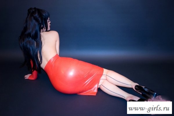 Обтягивающая красная юбка - голые в латексе фото