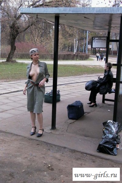 Был пасмурный день, людей на улице мало, но троллейбус или маршрутку ждало всего пара человек. И тут женщина на остановке показывала сиськи мне, никто бы не поверил если б не фото! Телочка была одета в серове, весьма консервативно выглядела ее юбка, однако грудь без лифчика и соски видно! Налитые дойки дамочки мне очень понравились. Прохаживаясь туда-сюда сучка все дразнила и дразнила, но не решалась показать больше, ведь под навесом сидел еще какой-то посторонний мужик. А жаль!