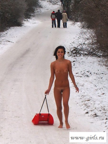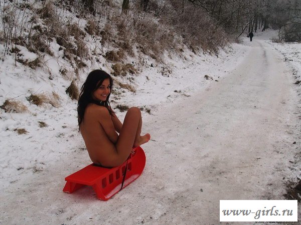 Неужели не холодно вот так вот выйти из собственного дома совершенно без одежды. Перед нами раздетая мадам зимой на публике катается на санках по снегу. С голыми ногами пассия ходит по холодной земле, а горячая страстная кровь не даёт ей замёрзнуть. Естественно, со стороны наблюдать на обнажённые буфера, а также милые ягодицы на попочке очень привлекательно, что мы сейчас и делаем с огромным желанием. Давайте поддержим эту куколку и пожелаем ей почаще так баловать нас своим волшебным телом.