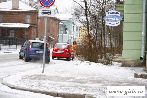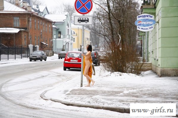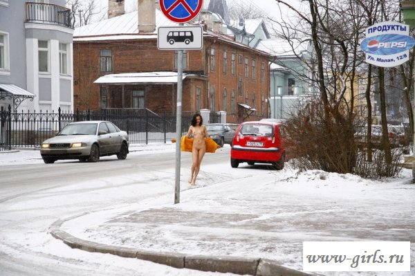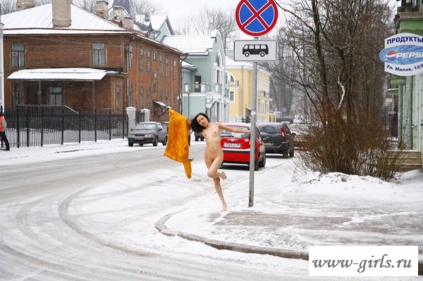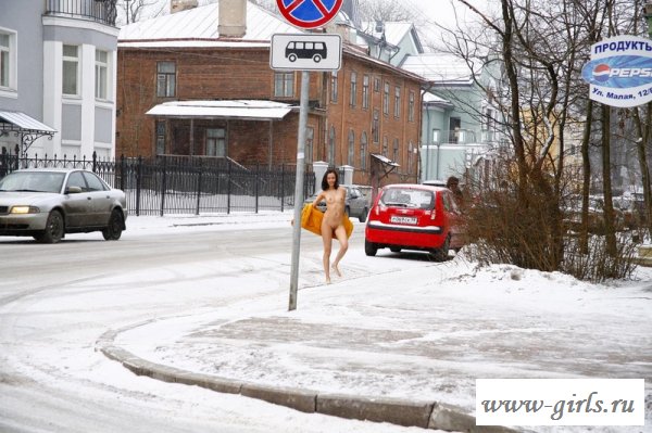 Не подумайте, что девушка сошла с ума, она просто выбежала в мороз после сауны в чем мать родила, то-есть обнаженная! И пока малышка трусила сиськами на публике ее засняли несколько зевак. Телка схватилась за столб, крутилась вокруг него, засветила писечку, сексуальные бедра, задок и яркие пятна сосков на мелких доечках. Какой-то прохожий на заднем плане тоже успел подсмотреть за ягодицами и прочими интимными местами у бэйби. А сама героиня эротичных историй делала такие поступки уже не раз, поэтому и не боится.