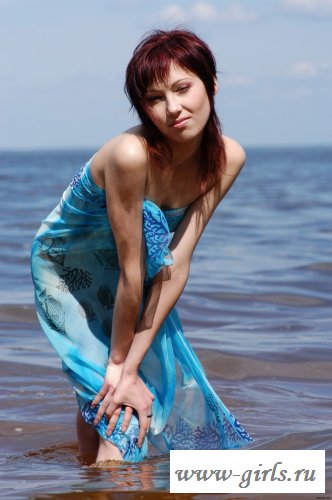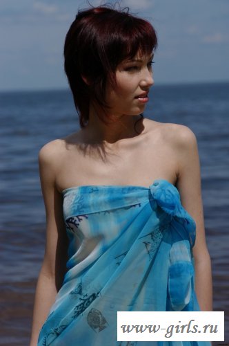 Зайдя в воду, замотанная в голубое покрывало, соблазнительная пусечка среди волн чуть чуть откидывает покрывало и мельком показывает восемнадцатилетнюю подтянутую грудь с маленькими и стоячими сосками, поворачивается к пляжу и полностью обнажается, отсвечивая выбритой дорожкой ведущей с мокрой жаркой дырочке.