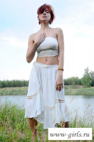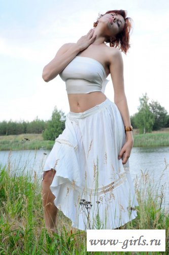 Эта симпатичная дама в белом сексуальном наряде с голым животиком и огромной возбуждающей грудью покажет тебе много интересного. Грациозная девушка в белом красиво прогуливается по берегу реки а из под ее одежды сексуально выступают возбужденные сосочки.