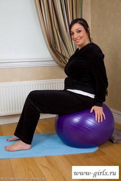 Брюнетка уже несколько месяцев каждый день занимается спортом, однако сегодня она заметила, что ей начал мешать ее черный спортивный костюм и поэтому она сейчас будет оголяться. Раздетая спортсменка показала огромные груди, а затем сняла трусы.