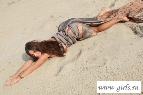 Кажется, эта девочка совсем не расстроилась из-за того что потерялась в пустыне. Она наконец-то свободна и может делать все что захочет. Голенькая девица в пустыне удобно устроилась на песке и принялась ласкать свое обнаженное тело. Она очень широко расставила свои ножки.