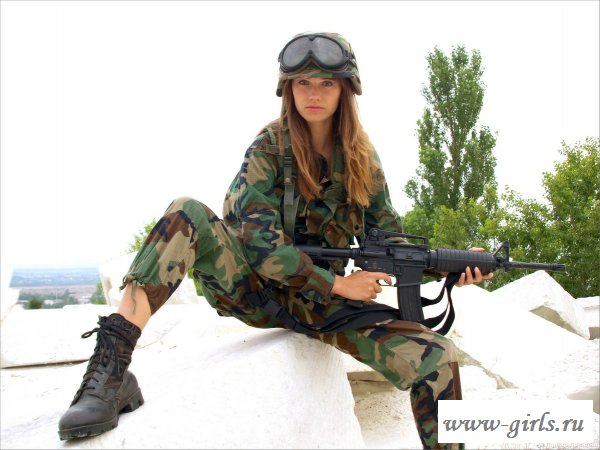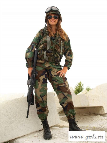 Капитан вывез красивую девушку на природу, чтобы устроить фотосессию. Военная тёлка с ружьём была одета в пограничную форму. Девка сексуально выглядела с оружием. Парень захотел увидеть её голышом. Небольшие сиси и коричневая пися возбудились от вспышек фотографа.