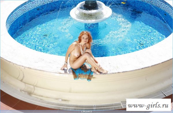 В этот жаркий день рыжая тёлочка, изнурённая жарой разделась на глазах у изумлённых людей. Рыжая тёлка у фонтана демонстрирует всем свои очаровательные формы. Она очень рада, что смогла найти в этот день фонтан у которого она освежилась и заодно про рекламировала своё тело.